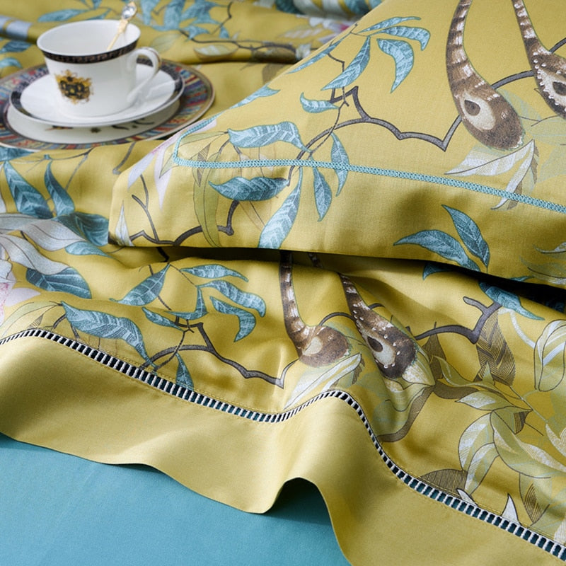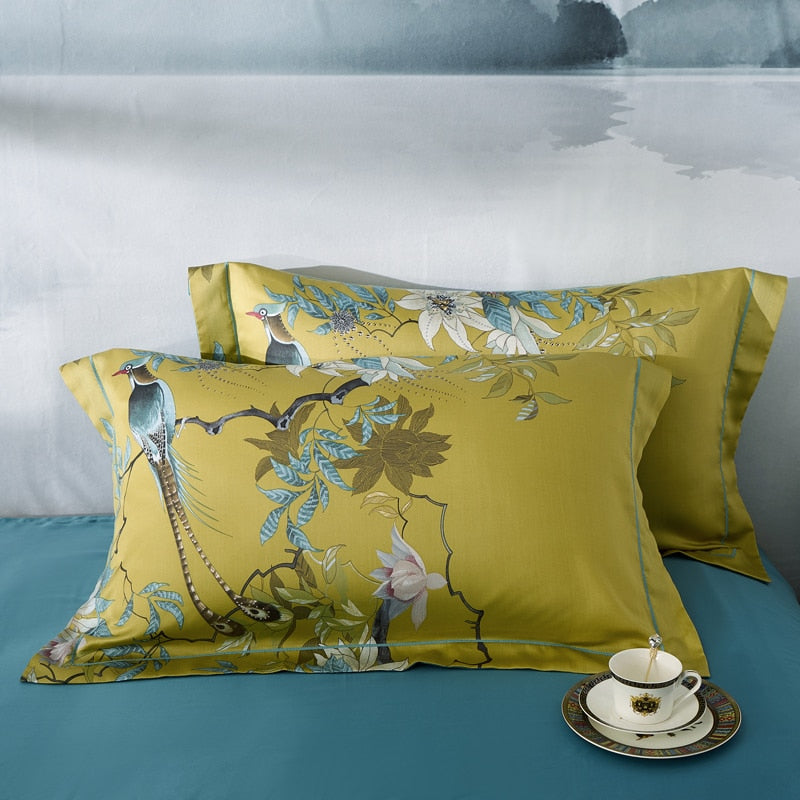 Our Birds Of Afrodita Bedding Set is made to dress your modern bedroom with an underlined touch of elegance. The flat and fitted bed sheets are made of 100% Egyptian Cotton, the softest bed sheets out there.